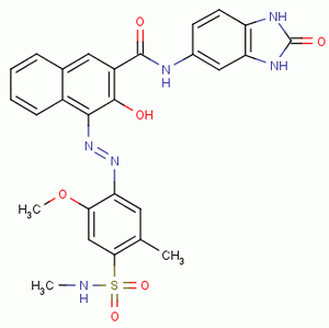 別名:2-萘甲酰胺,N-(2,3-二氫-2-氧代-1H-苯並咪唑-5-基)-3-羥基-4-((2-甲氧基-5-甲基-4-((甲基氨基)磺酰基)苯基)偶氮)-; 2-萘甲酰胺,N-(2,3-二氫-2-氧代-1H-苯並咪唑-5-基)-3-羥基-4-(2-(2-甲氧基-5-甲基-4-((甲基氨基))磺酰基)苯基)二氮烯基)-; N-(2,3-二氫-2-氧代-1H-苯並咪唑-5-基)-3-羥基-4-((2-甲氧基-5-甲基-4-((甲基氨基)磺酰基)苯基)偶氮)萘-2-甲酰胺; 12516;深紅色;永久胭脂紅HF4C;牡丹紅[HO]; ; (4Z)-4- {2- [2- [2-甲氧基-5-甲基-4-(甲基氨磺酰基)苯基]苯二亞甲基} -3-氧代-N-(2-氧代-2,3-二氫-1H-苯並咪唑-5 -基)-3,4-二氫萘-2-羧酰胺